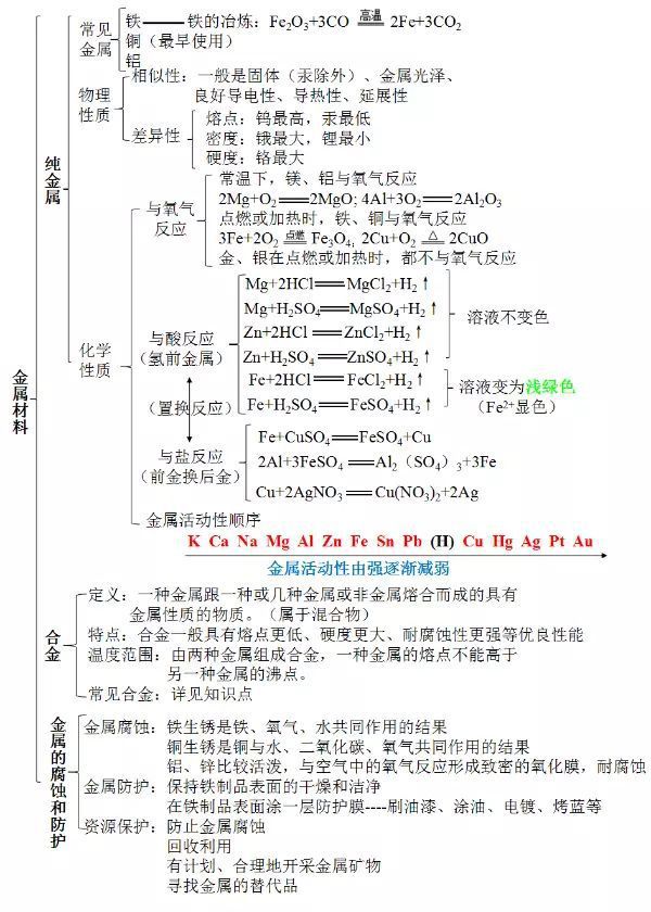 金屬和金屬材料知識點總結